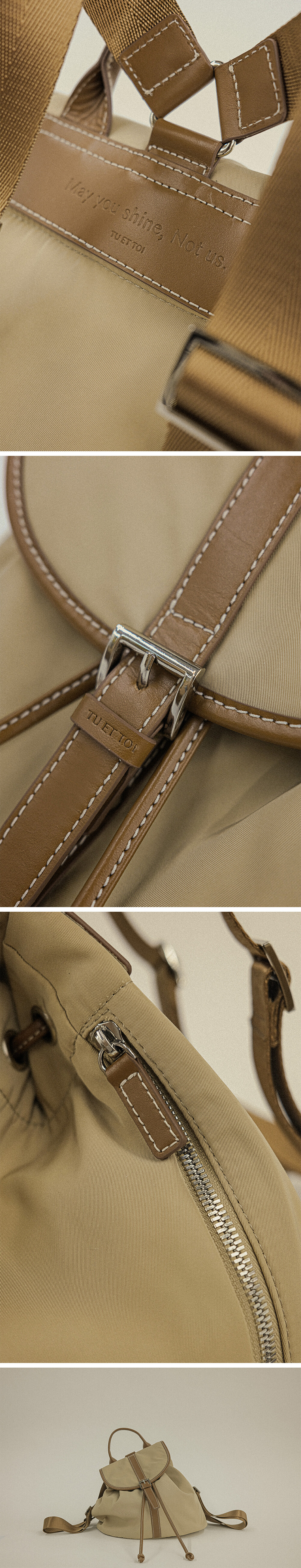 터치감과 광택감이 휼륭한 나일론소재에 천연 소가죽을 덧댄 디자인으로 다양한 스타일에 자연스럽게 어울리는 제품입니다.