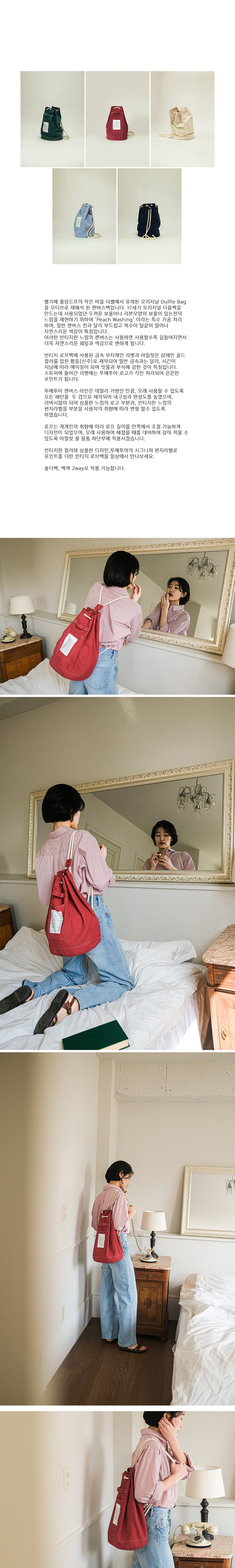 벨기에 플랑드르의 작은 마을 더펠에서 유래된 오리지날 Duffle Bag을 모티브로 재해석 된 캔버스백입니다. 17세기 오리지널 더플백을 만드는데 사용되었던 두꺼운 보풀이나 리본모양의 보풀이 있는천의 느낌을 재현하기 위하여 ‘Peach Washing’ 이라는 특수 가공 처리 하여, 일반 캔버스 천과 달리 부드럽고 복수아 털같이 일어나 자연스러운 색감이 특징입니다.