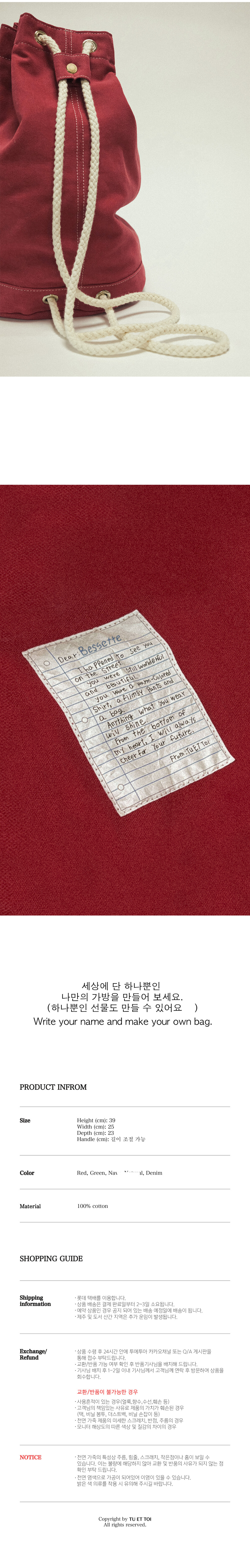 투에투아 캔버스 라인은 데일리 가방인 만큼, 오래 사용할 수 있도록 모든 패턴을 두 겹으로 제작되어 내구성과 완성도를 높였으며, 리버시블이 되어 심플한 느낌의 로고 부분과, 빈티지한 느낌의 편지라벨을 부분을 사용자의 취향에 따라 변형 할수 있도록 하였습니다.