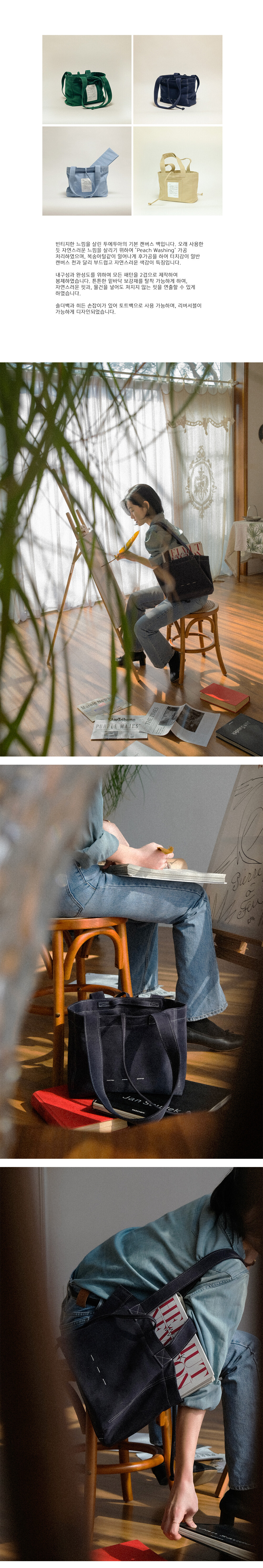빈티지한 느낌을 살린 투에투아의 기본 캔버스 백입니다. 오래 사용한 듯 자연스러운 느낌을 살리기 위하여 ‘Peach Washing’ 가공 처리하였으며, 복숭아털같이 일어나게 후가공을 하여 터치감이 일반 캔버스 천과 달리 부드럽고 자연스러운 색감이 특징입니다.