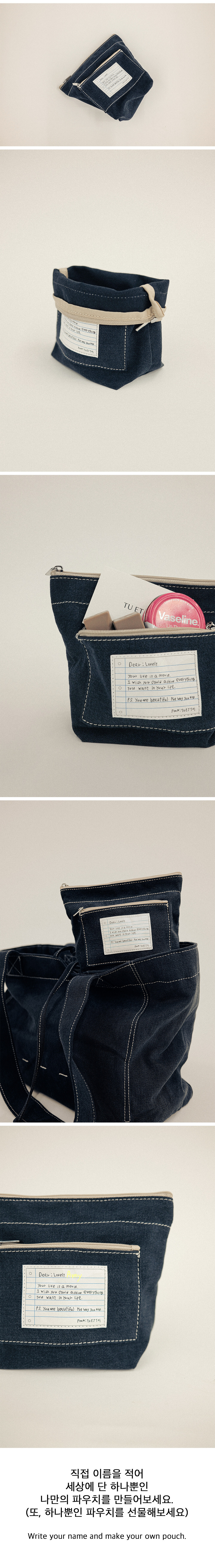 한편의 영화와 같은 당신의 인생을 응원 하는 편지라벨이 파우치 정면포켓에 부착되어있습니다.