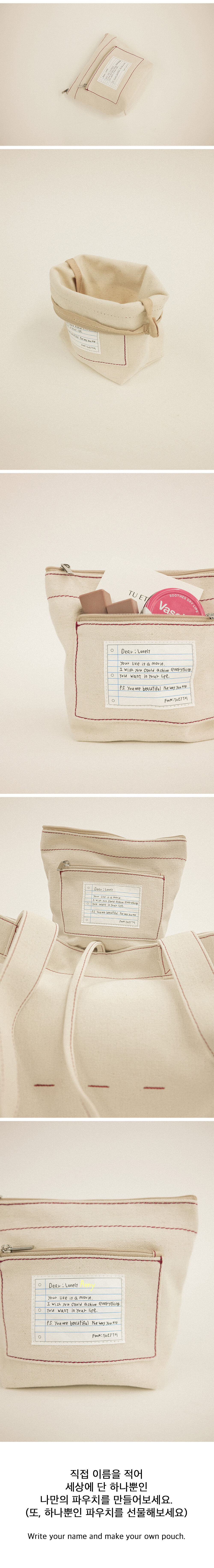 한편의 영화와 같은 당신의 인생을 응원 하는 편지라벨이 파우치 정면포켓에 부착되어있습니다.