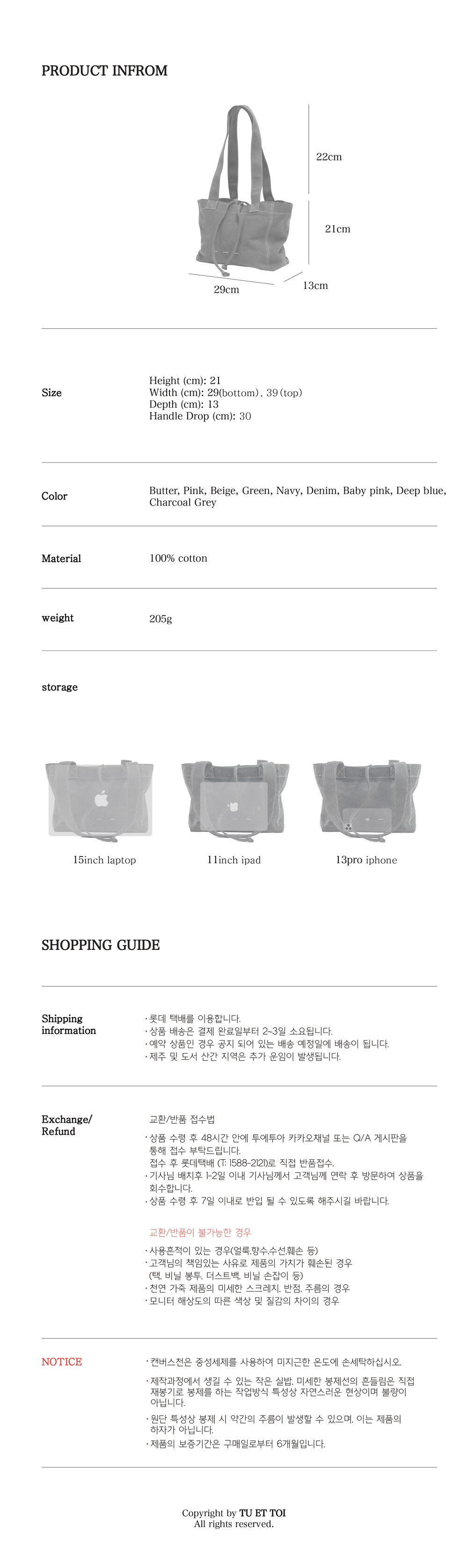 빈티지한 느낌을 살린 투에투아의 기본 캔버스 백입니다. 오래 사용한 듯 자연스러운 느낌을 살리기 위하여 ‘Peach Washing’ 가공 처리하였으며, 복숭아털같이 일어나게 후가공을 하여 터치감이 일반 캔버스 천과 달리 부드럽고 자연스러운 색감이 특징입니다.